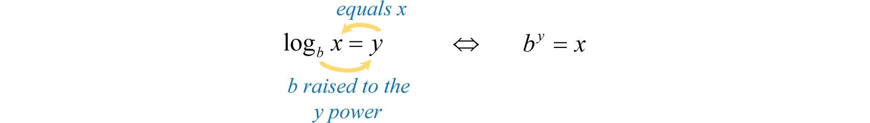 It is useful to note that the logarithm is actually the exponent y to which the base b is raised to obtain the argument x.
