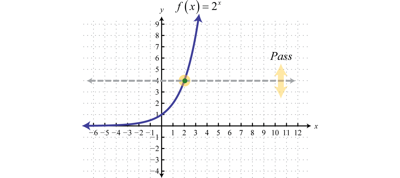 We begin with the exponential function defined by and note that it passes the horizontal line test.