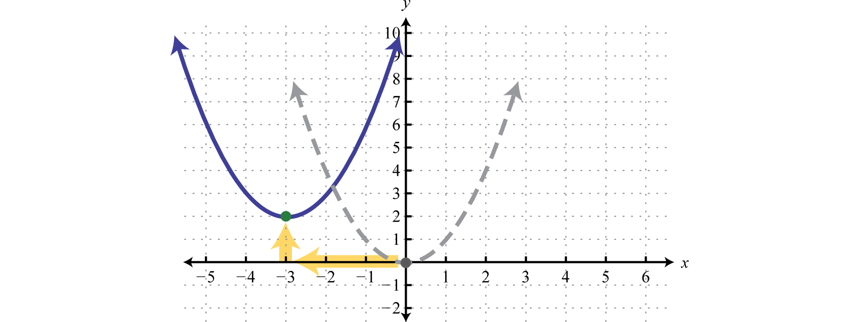 Recall that the graph of a quadratic function, a polynomial function of degree 2, is parabolic. We can write the equation of a parabola in general formThe equation of a parabola written in the form or , where a, b, and c are real numbers and or we can write the equation of a parabola in standard formThe equation of a parabola written in the form or :