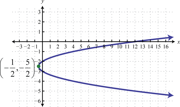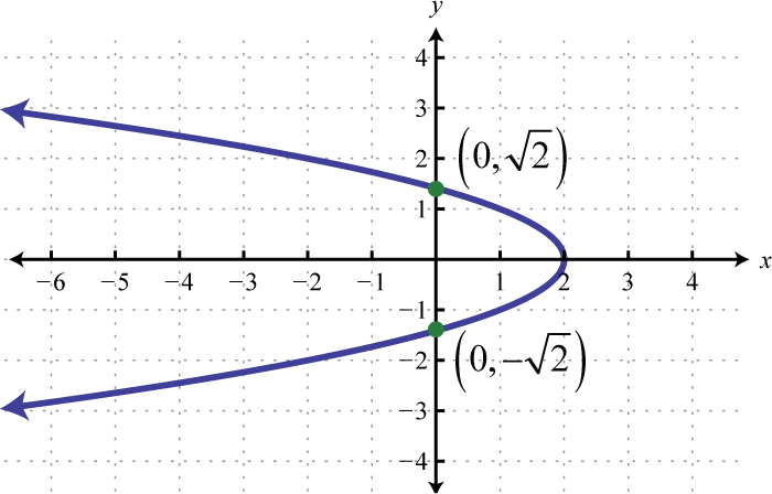 Note that the resulting graph is not a function. However, it does have the same general parabolic shape that opens left. We can recognize equations of parabolas that open left or right by noticing that they are quadratic in y instead of x. Graphing parabolas that open left or right is similar to graphing parabolas that open upward and downward. In general, we have