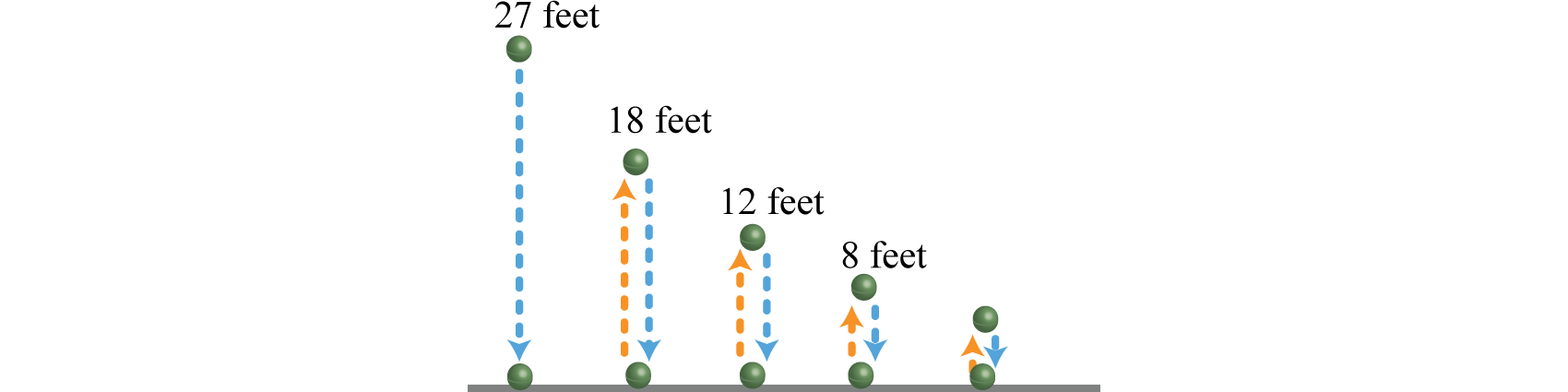 Therefore, the ball is rising a total distance of 54 feet. Approximate the total distance traveled by adding the total rising and falling distances:
