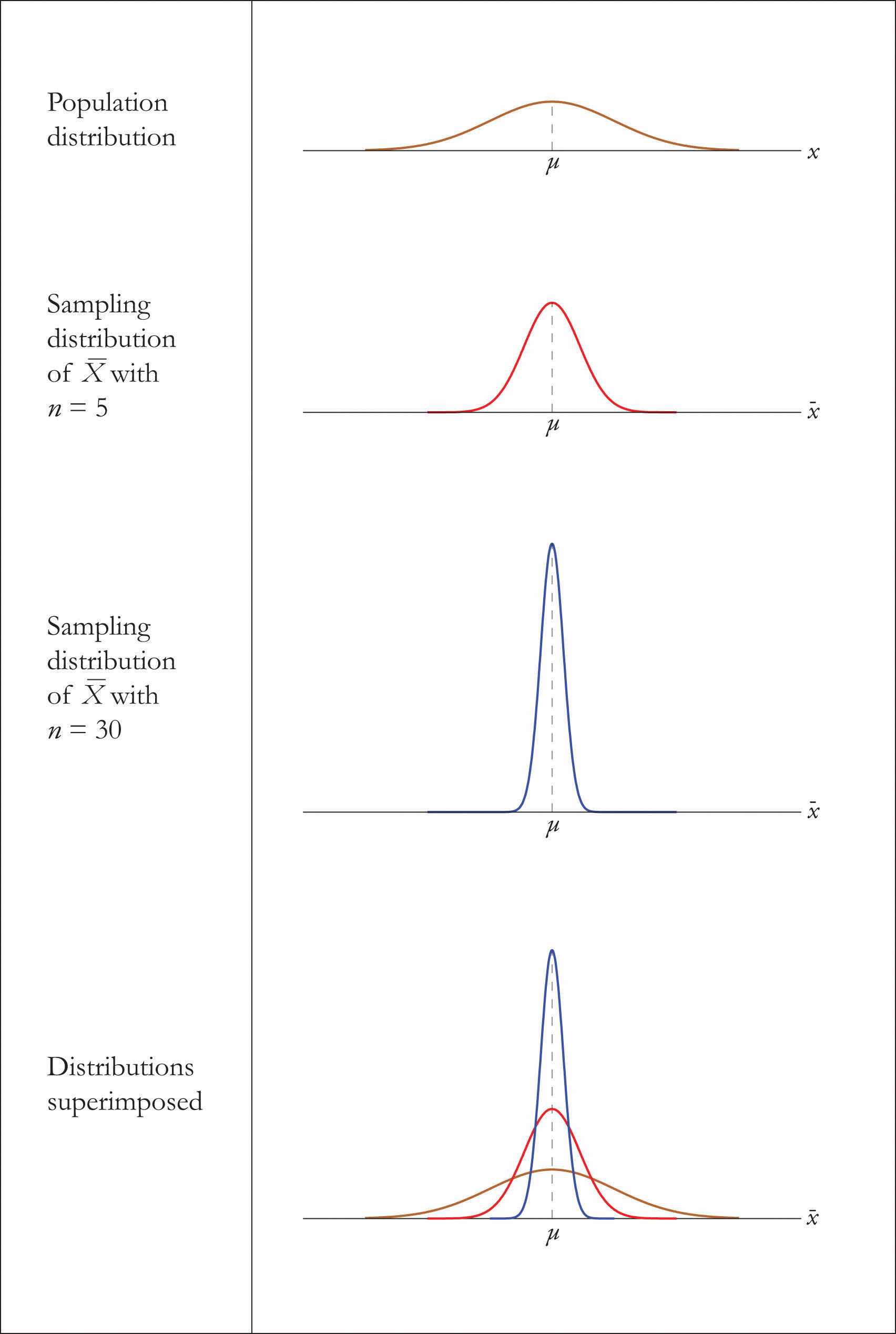 Histograms illustrating these distributions are shown in Figure 6.2 "Distributions of the Sample Mean".