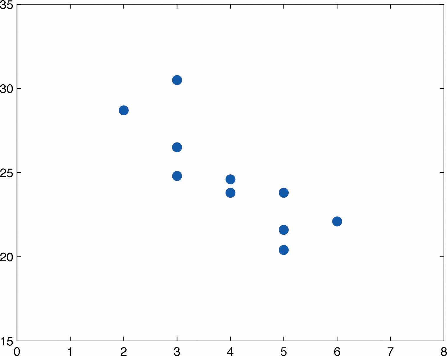 Figure 10.7 Scatter Diagram for Age and Value of Used Automobiles