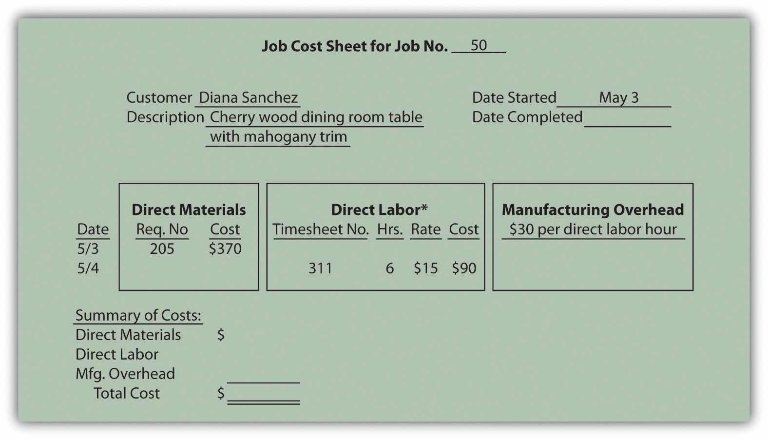 Figure 2.3 Job Cost Sheet for Custom Furniture Company