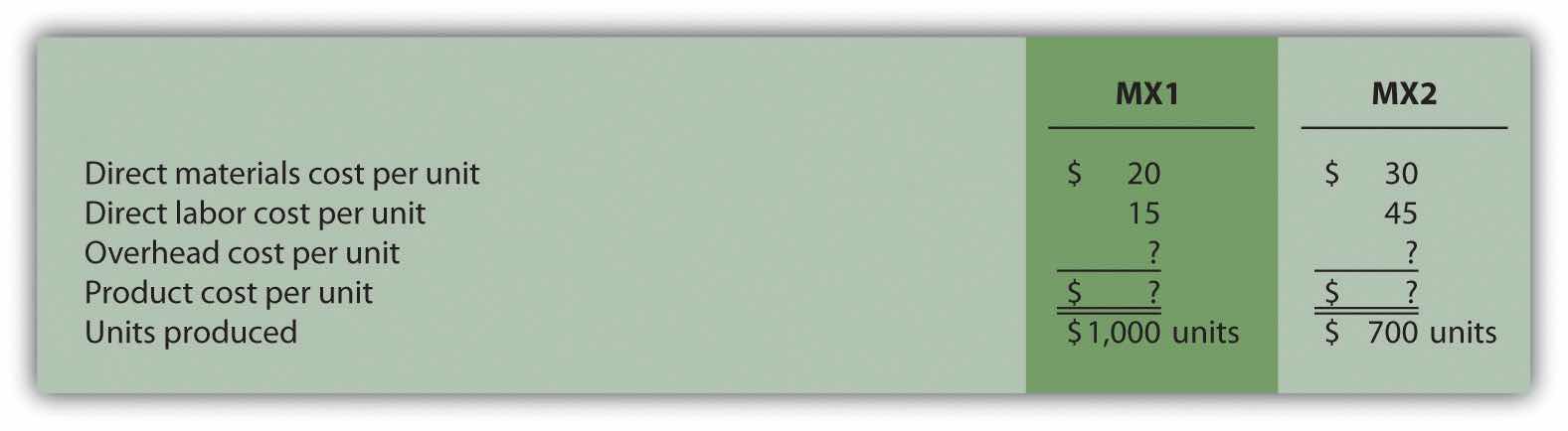 The company produces two products, MX1 and MX2. Information about these products for the month of March follows: