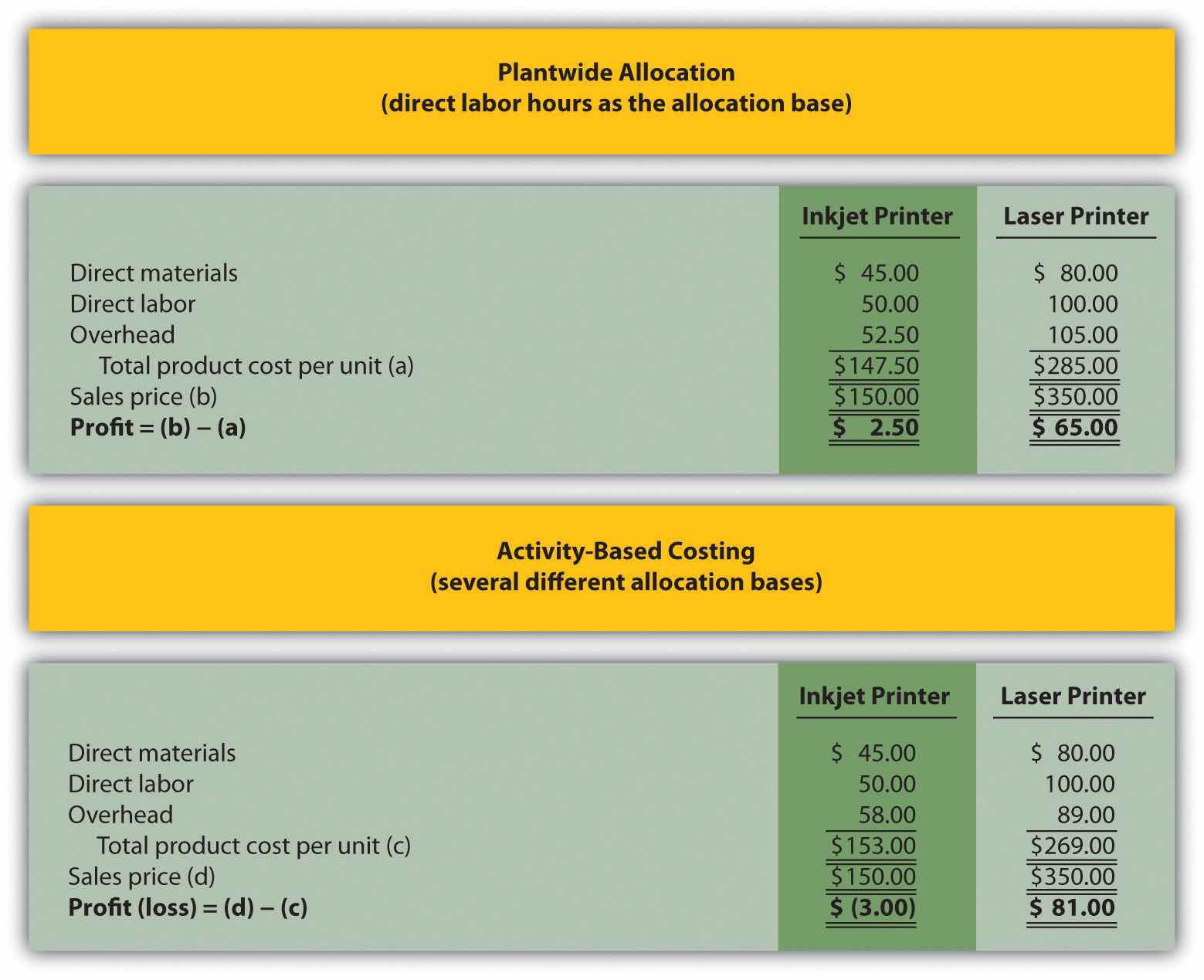Question: Managers at companies such as Hewlett-Packard often look for better ways to figure out the cost of their products. When Hewlett-Packard produces printers, the company has three possible methods that can be used to allocate overhead costs to products—plantwide allocation, department allocation, and activity-based allocation (called activity-based costing). How do managers decide which allocation method to use?