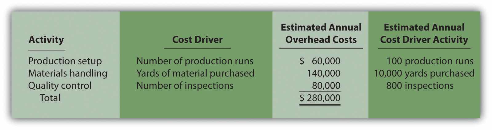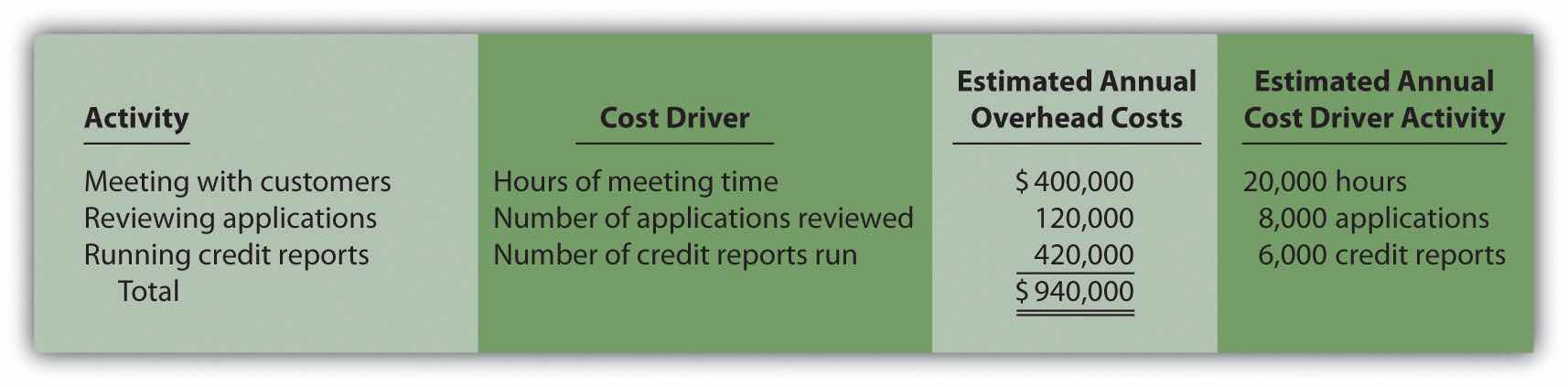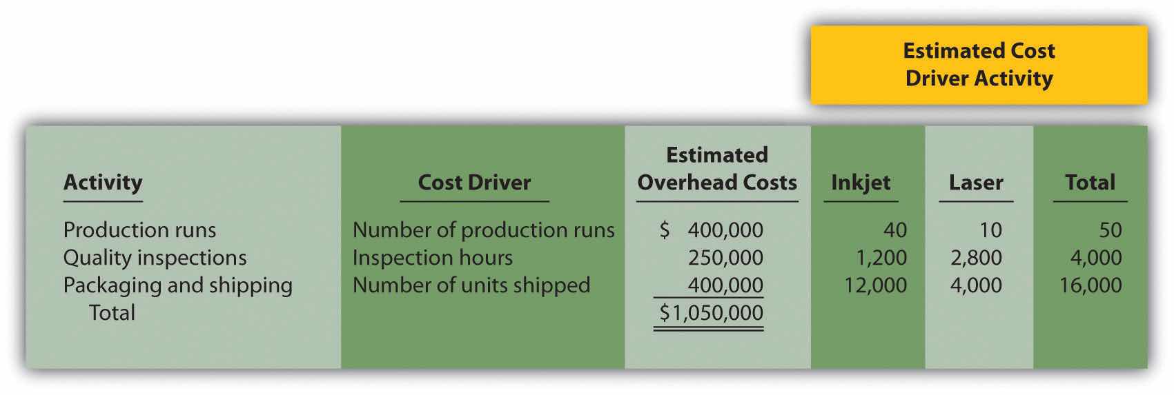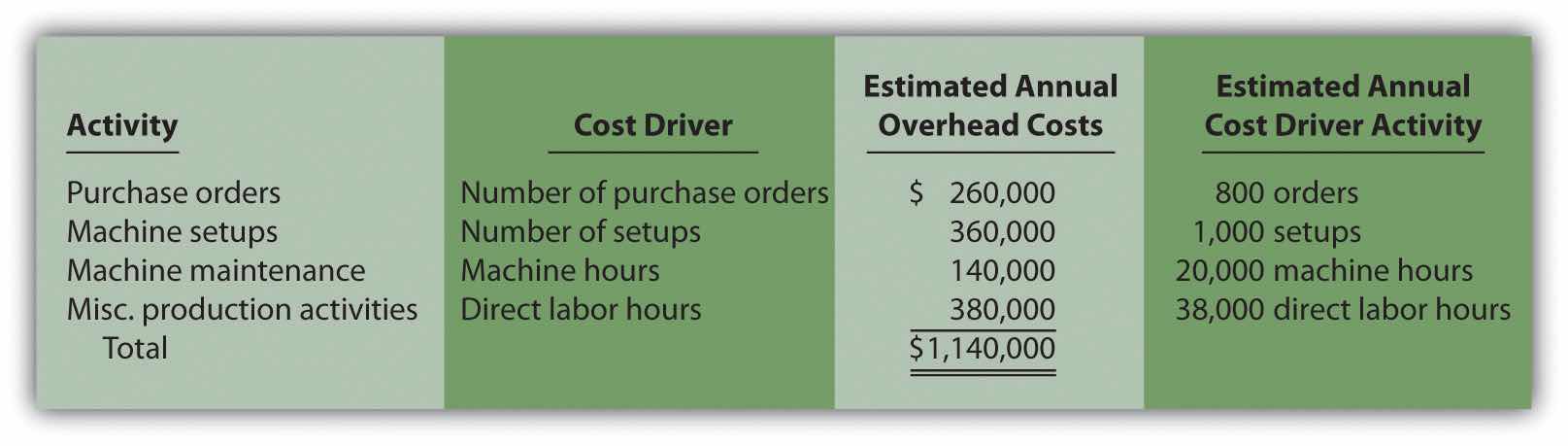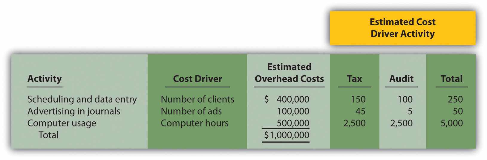 | Activity | Cost Driver | Estimated Annual Cost Driver Activity |