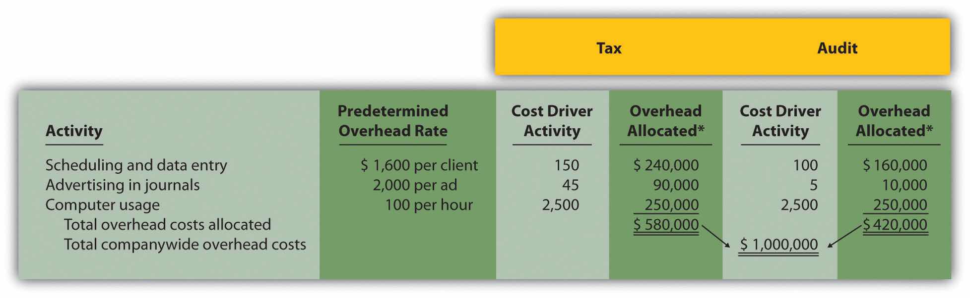 *Overhead allocated equals the predetermined overhead rate times the cost driver activity.