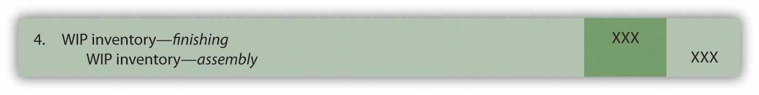 Answer: Assume the Assembly department at Desk Products, Inc., completes a batch of desks and moves the desks to the Finishing department. The costs associated with these desks must be transferred from the work-in-process inventory account for the Assembly department to the work-in-process inventory account for the Finishing department. Thus these costs are being transferred in to the Finishing department. The journal entry to reflect this is as follows: