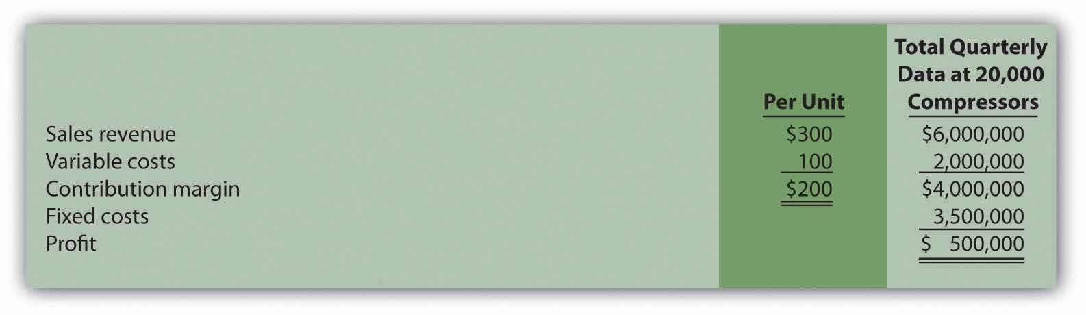 Pneumatic received an offer from a one-time customer to purchase 5,000 compressors this coming quarter for $275 per unit. Pneumatic can produce up to 30,000 units a quarter, so the special order would not affect regular customer sales. Variable costs per unit will remain at $100. This special order will have no effect on fixed costs.