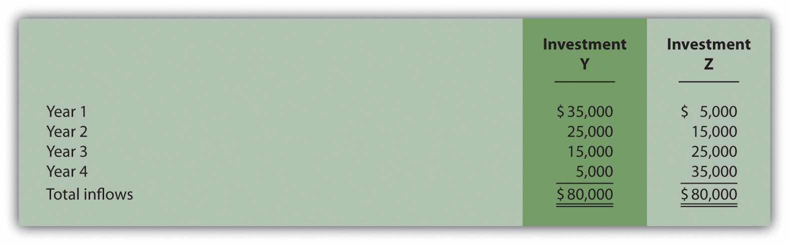 Net Present Value Calculations. Freefall, Inc., has two independent investment opportunities, each requiring an initial investment of $65,000. The company’s required rate of return is 8 percent. The cash inflows for each investment are provided as follows.