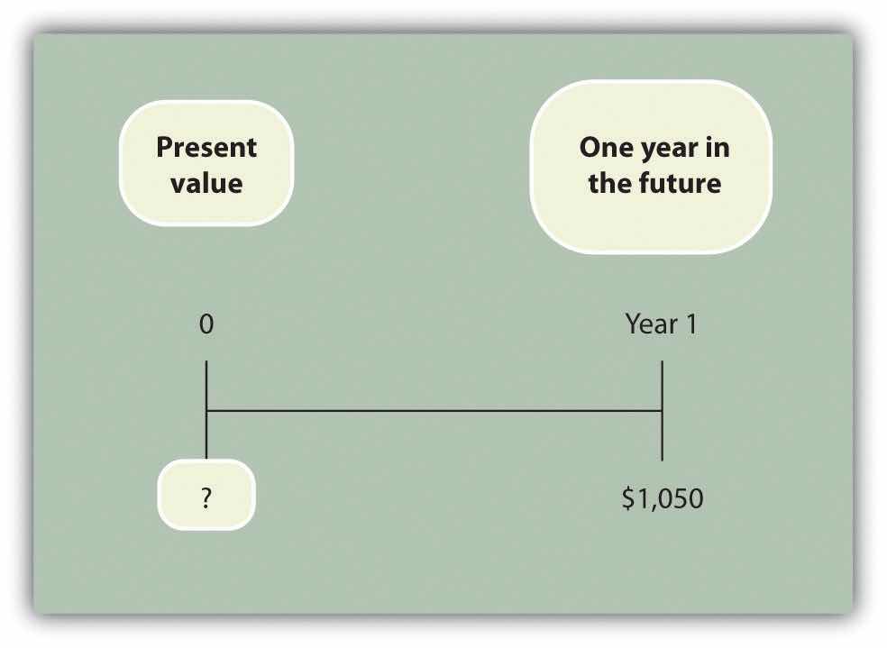 Question: Let’s change course and find the present value of the same future cash flow. If you receive $1,050 in 1 year, how much is that worth in today’s dollars assuming an annual interest rate of 5 percent?