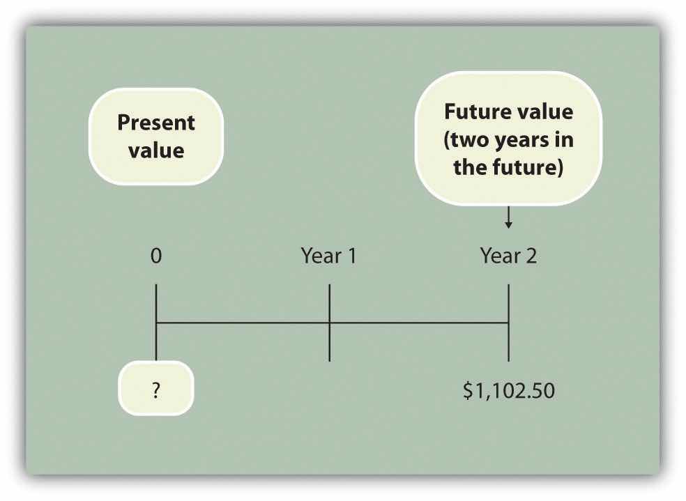 Question: Again, let’s change course and find the present value of the same future cash flow. If you receive $1,102.50 in 2 years, how much is that worth in today’s dollars assuming an annual interest rate of 5 percent?