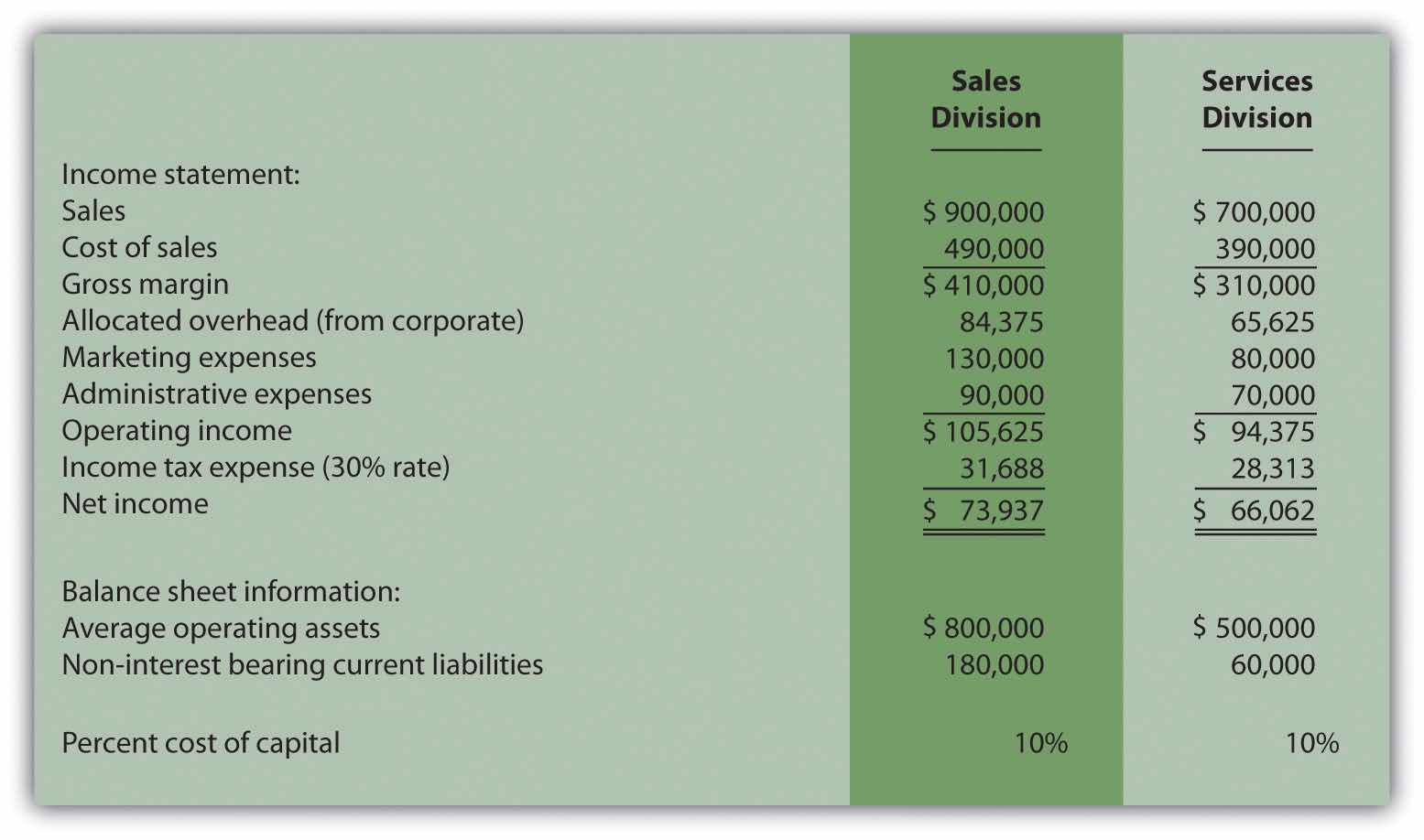 The East division had average operating assets totaling $1,800,000 for the year, and the West division had average operating assets of $2,600,000. Assume the cost of capital rate is 8 percent, and the company’s tax rate is 30 percent. Division managers are responsible for sales, costs, and investments in assets.