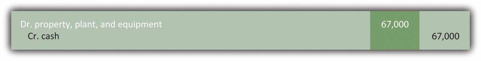 Notice the two entries to property, plant, and equipment shown previously. The net effect of these 2 entries is an increase of $46,000 (= $67,000 − $21,000). This is summarized in the following T-account: