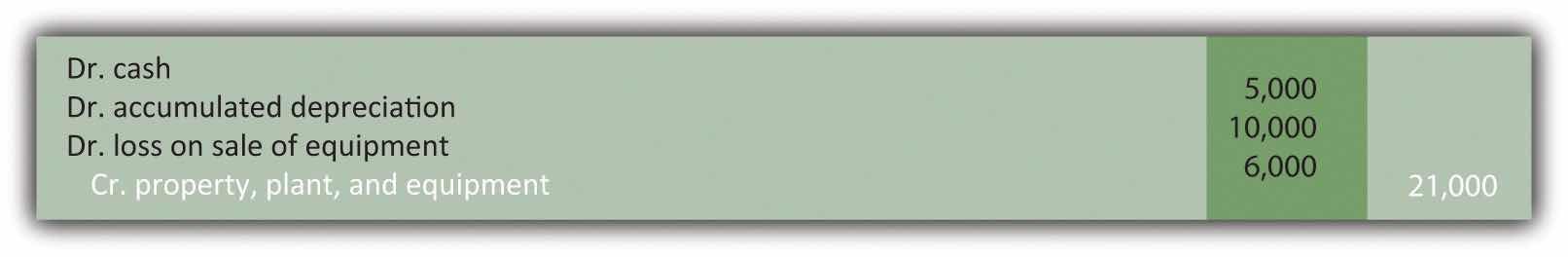 Second, the company sold equipment for $5,000 cash (often called a disposal of equipment). This equipment was on the books at an original cost of $21,000 with accumulated depreciation of $10,000. Home Store, Inc., made the following journal entry for this transaction: