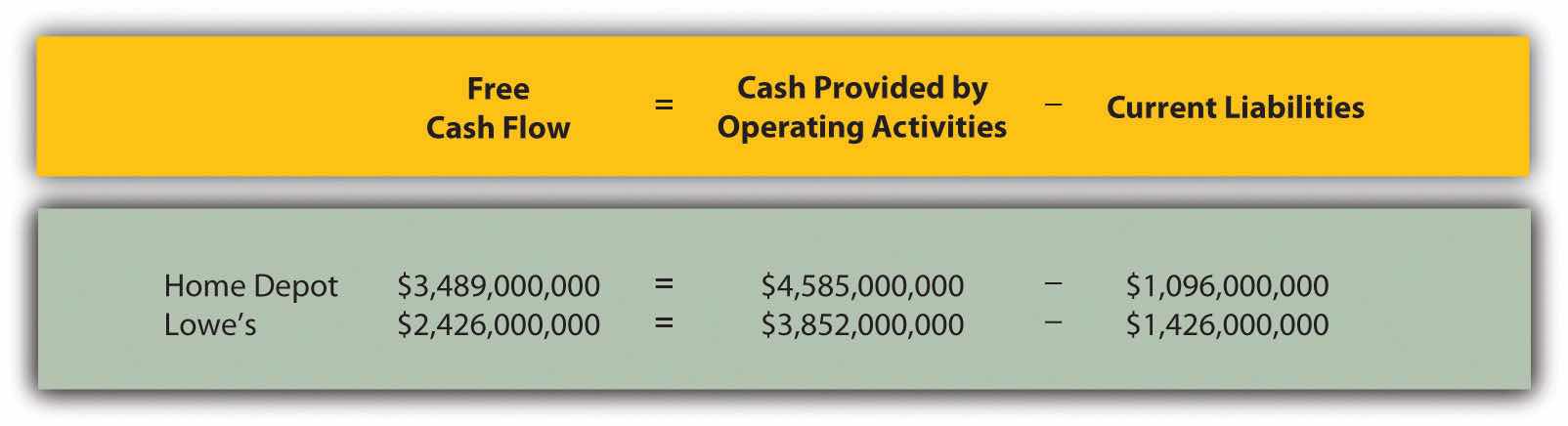 The free cash flow amount is calculated for Home Depot and Lowe’s as follows using information from each company’s statement of cash flows.