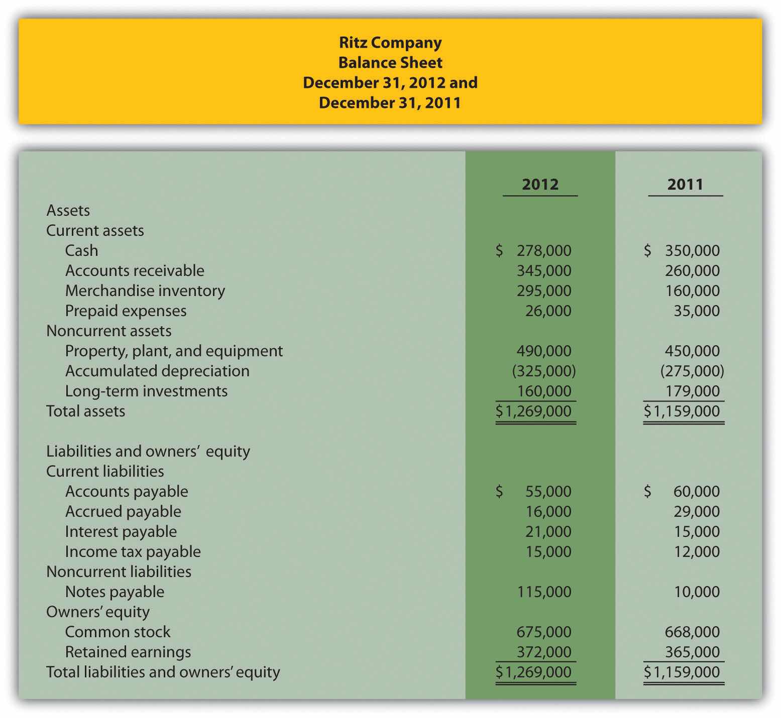 Prepare and Analyze a Statement of Cash Flows, Indirect Method and Direct Method. Ritz Company’s most recent balance sheet, income statement, and other important information for 2012 are presented as follows.