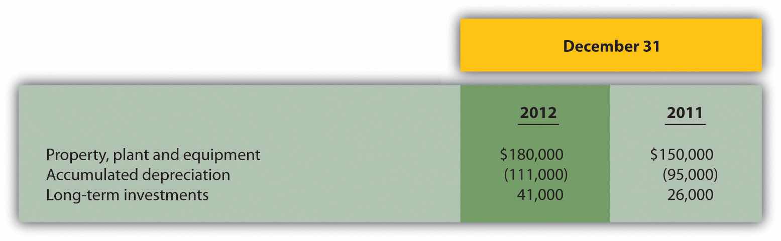 Investing Activities Section. The following information is from the noncurrent asset portion of Gebhardt Company’s balance sheet.