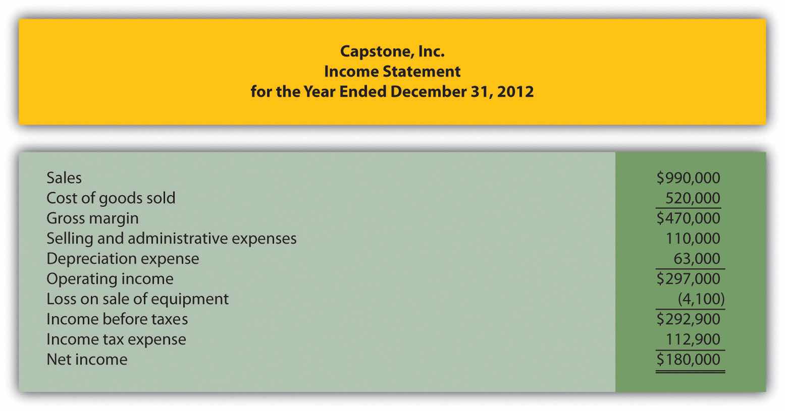 Operating Activities Section Using the Indirect Method. The following income statement and current sections of the balance sheet are for Capstone, Inc.