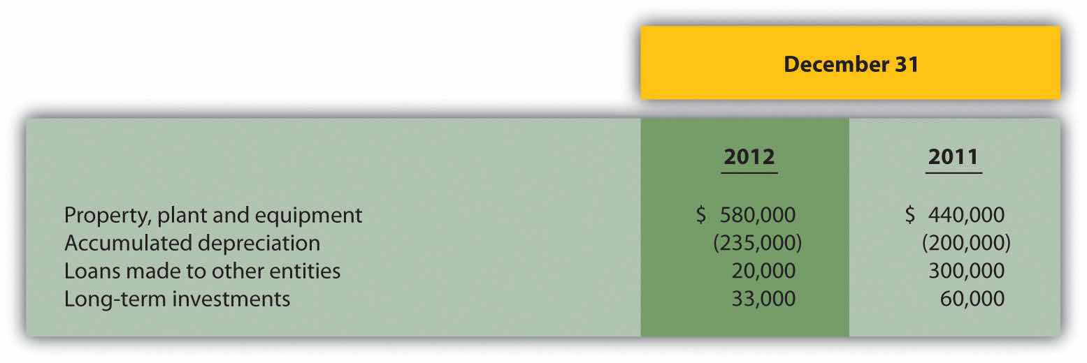 Investing Activities Section. The following information is from the noncurrent asset portion of Caldera, Inc.’s balance sheet.
