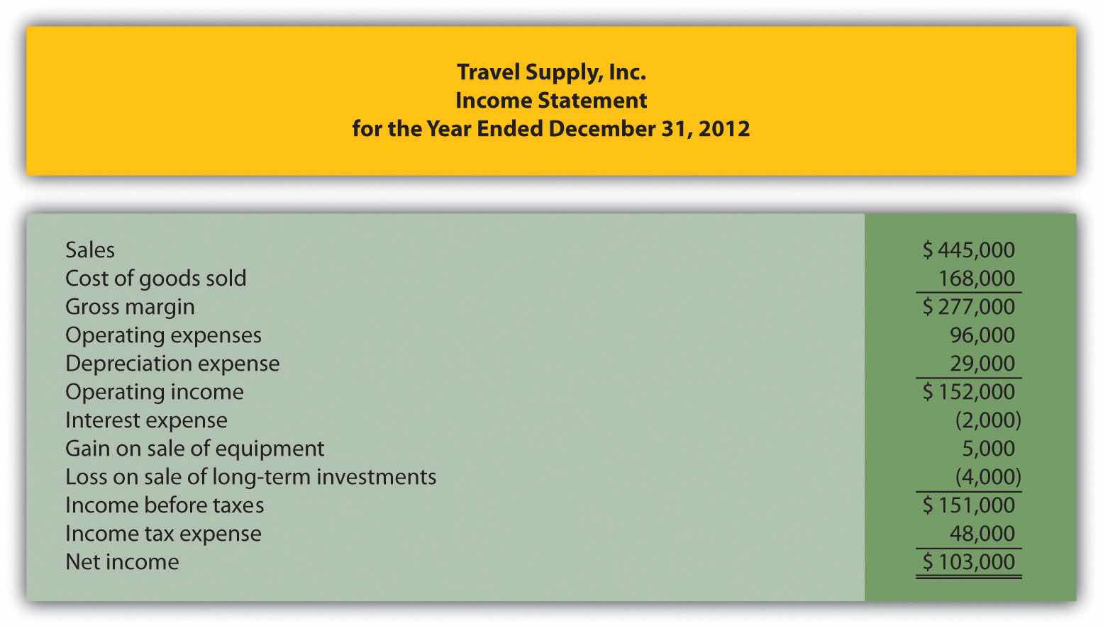Prepare and Analyze a Statement of Cash Flows, Indirect Method. Travel Supply, Inc.’s most recent balance sheet, income statement, and other important information for 2012 are presented as follows.