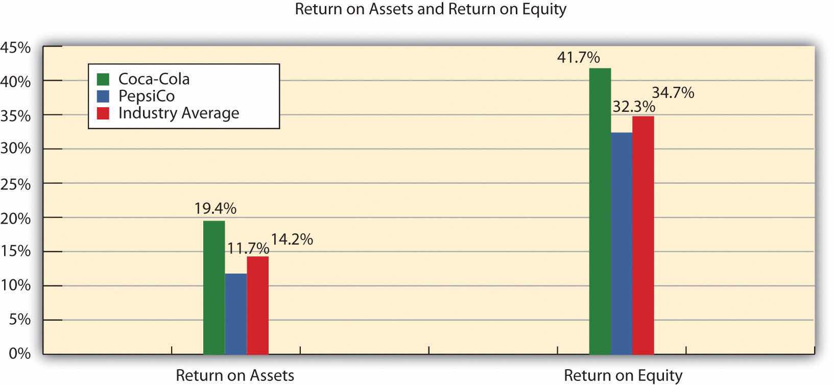 Figure 13.9 "Return on Assets and Return on Equity for " shows the return on assets and return on equity for Coca-Cola, PepsiCo, and the industry average.
