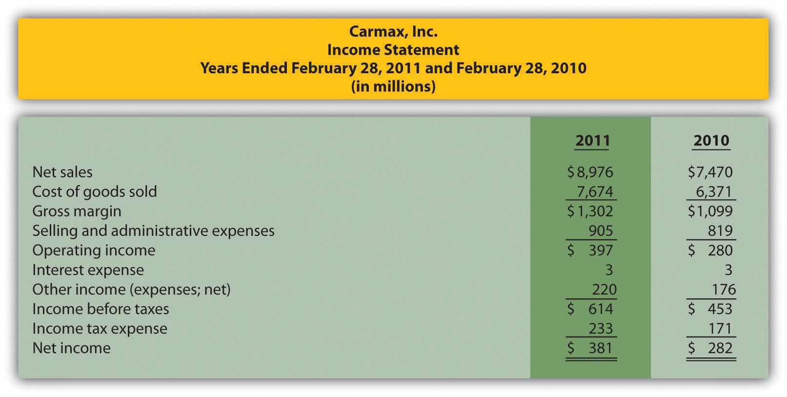 Trend Analysis. The following condensed income statement is for CarMax, Inc., a large retailer of used vehicles.