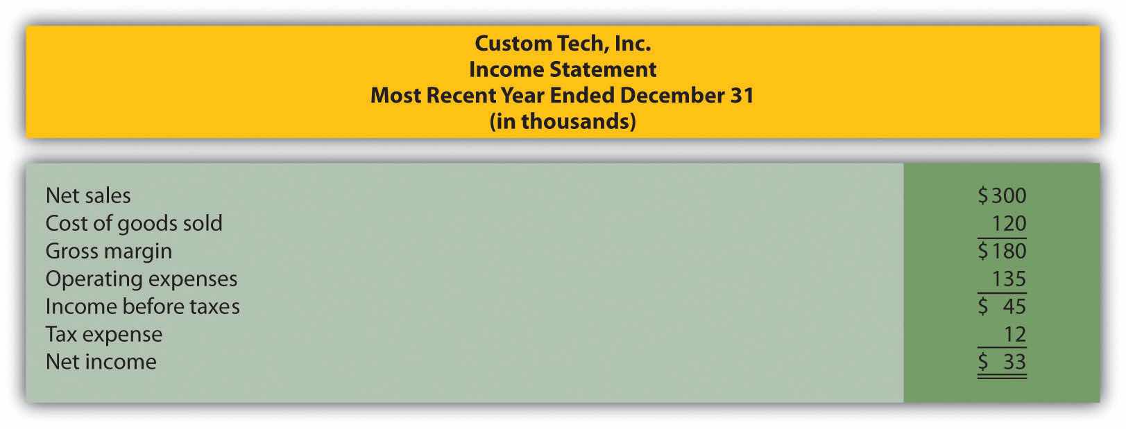 The financial statements shown as follows are for Custom Tech’s most recent year ended December 31. This information has not yet been provided to the bank.